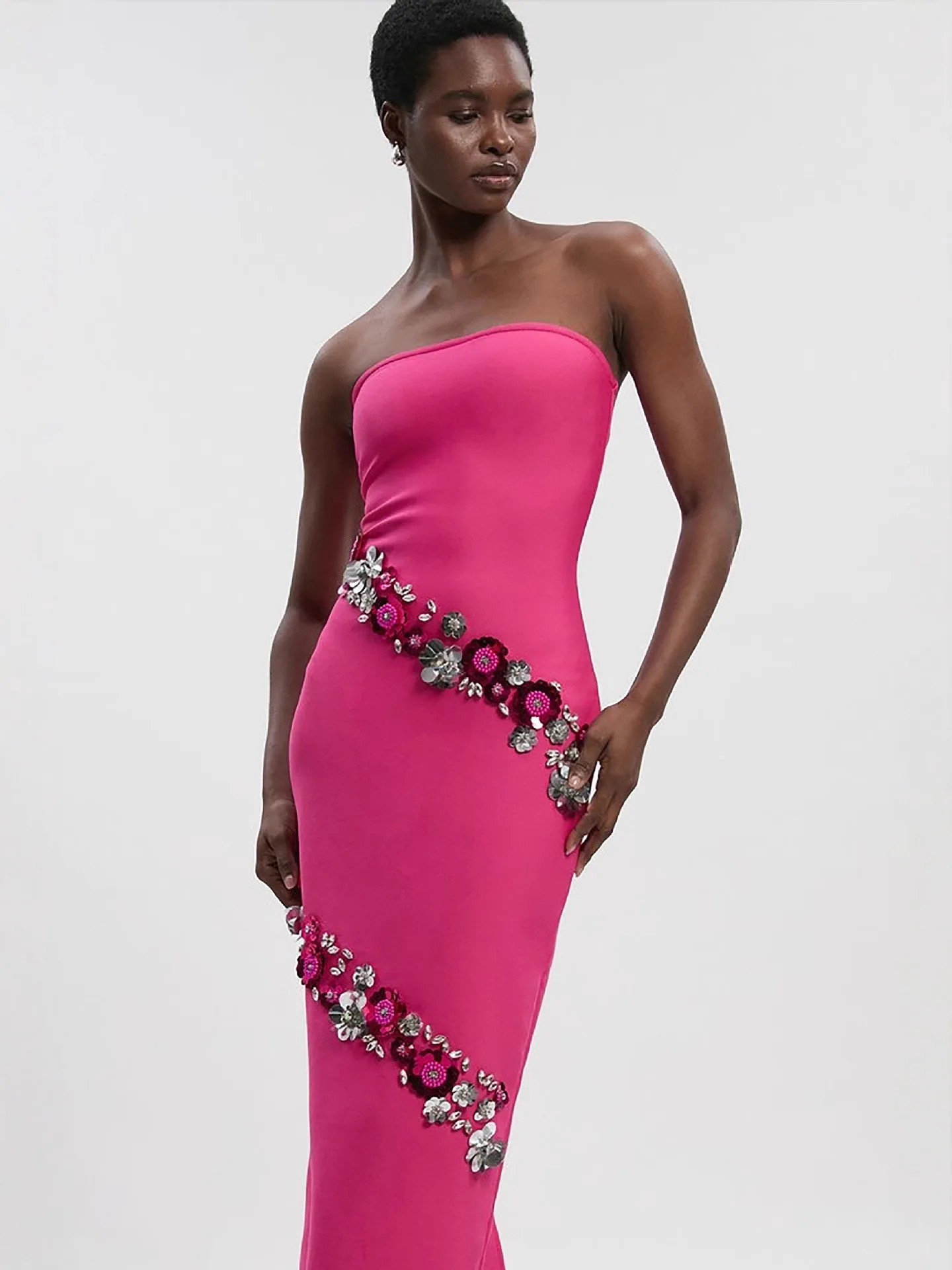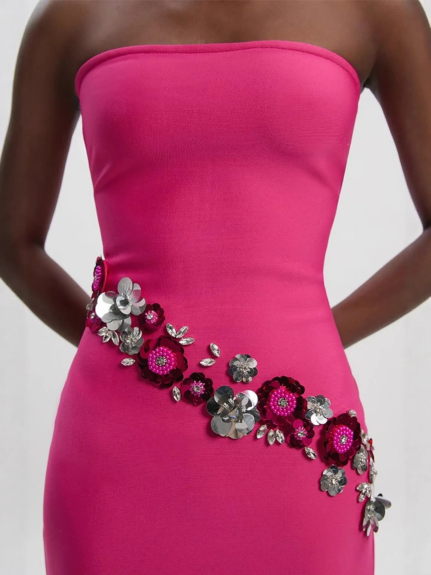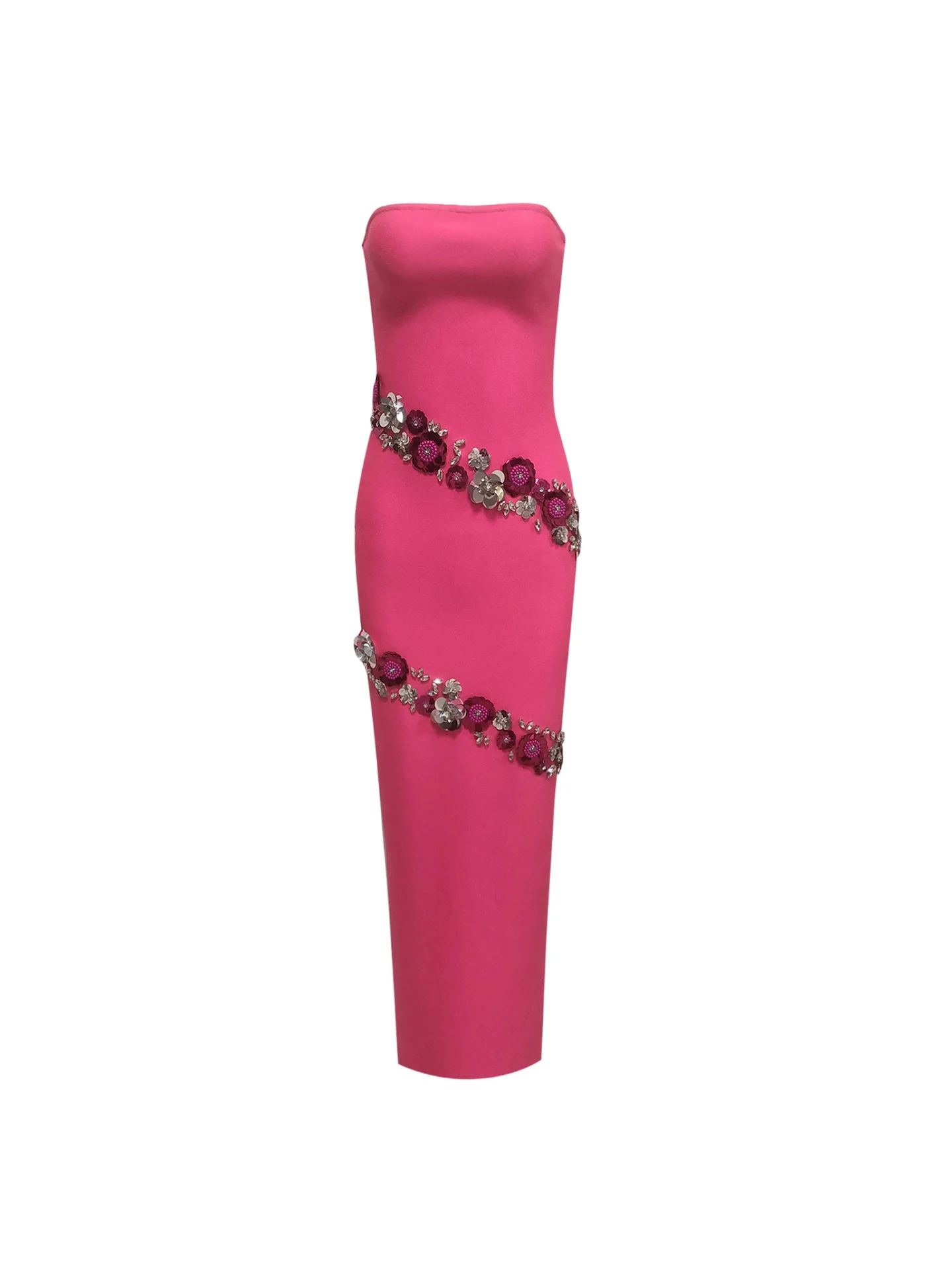 Bettergirl Fashion 2026 New Sequin Diamond Rose Red Long Dress Slit Sexy Elegant Bandage Dress